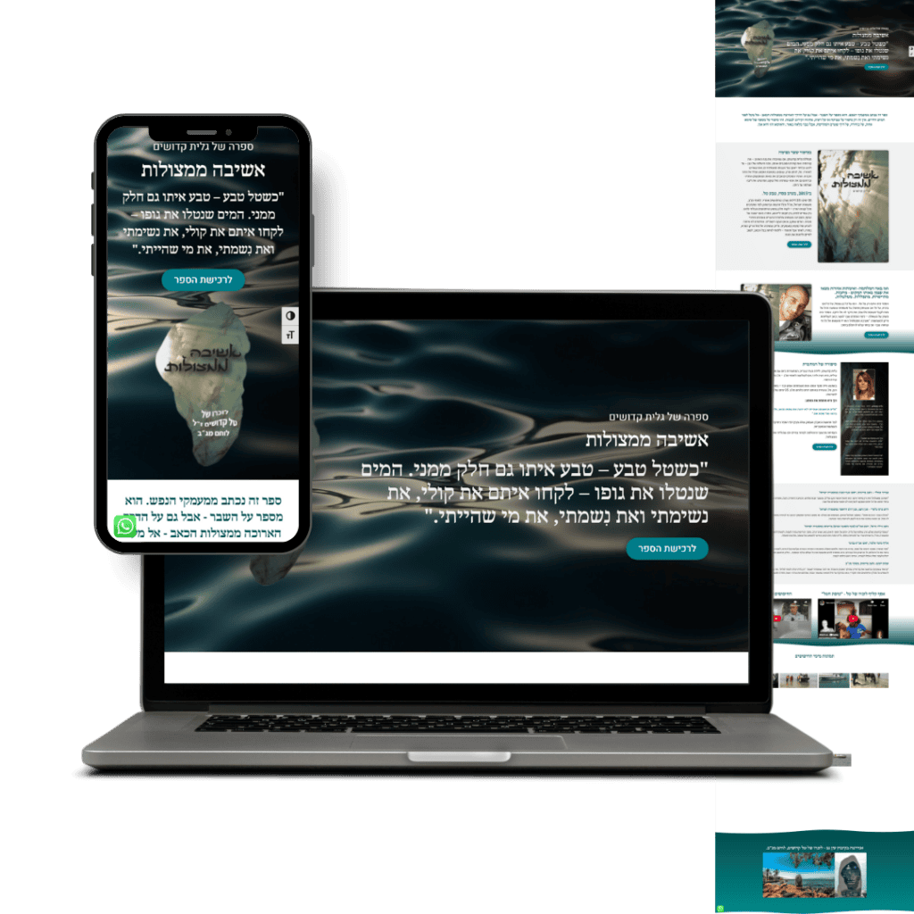 בניית דף מכירה עבור הספר אשיבה ממצולות מאת גלית קדושים, אם שכולה המספרת את מסעה האישי בעקבות אובדן בנה טל. הדף מציג תקציר מהספר, קטעים מרכזיים, רקע על המחברת, המלצות מקוראים וכפתורי רכישה ברורים. העיצוב נשמר נקי וממוקד כדי לאפשר לתוכן הרגשי להגיע לקורא בצורה מכובדת ורגישה.