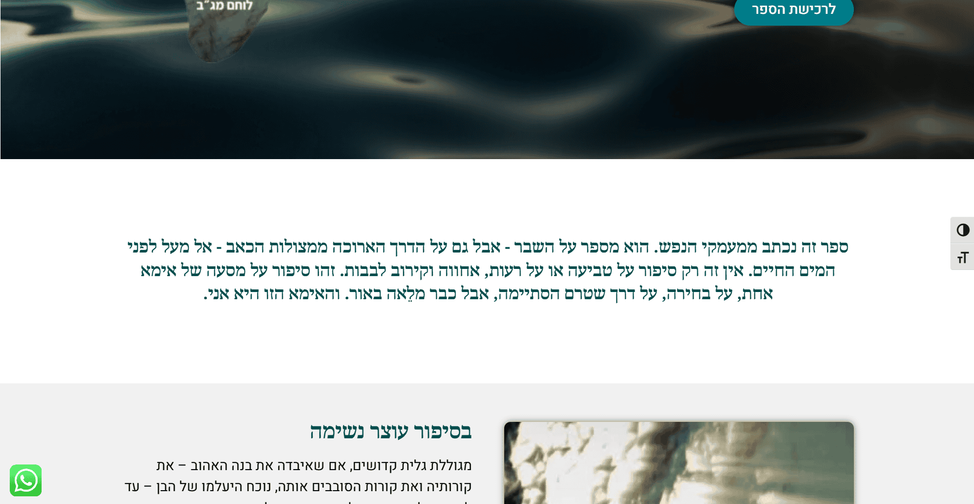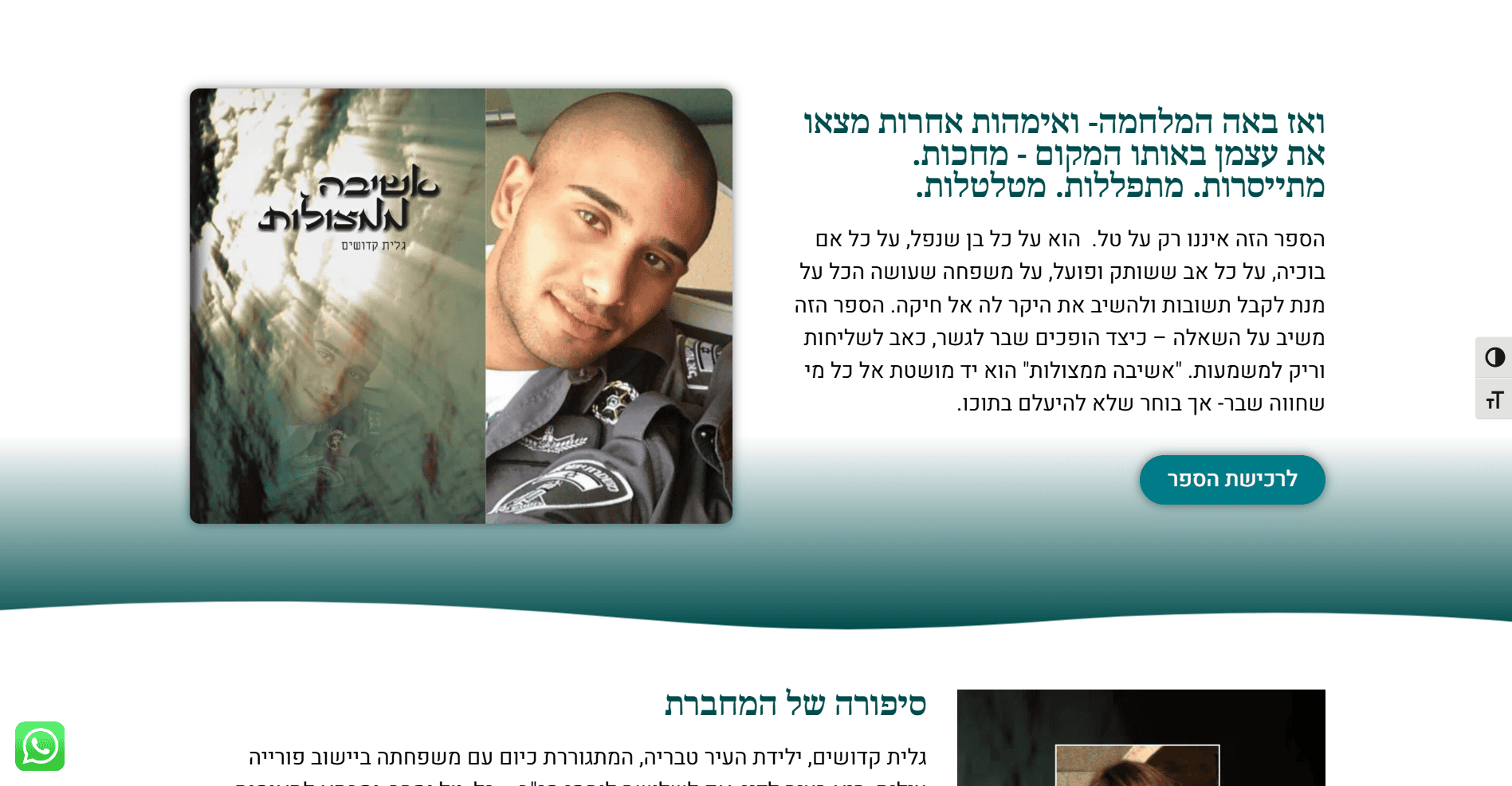 בניית דף מכירה עבור הספר "אשיבה ממצולות" מאת גלית קדושים – אם שכולה המספרת את מסעה האישי בעקבות אובדן בנה טל. הדף מציג בצורה מרוכזת את הסיפור מאחורי הספר, קטעים מרכזיים, המלצות, פרקי רקע והרכישה עצמה. הפרויקט כלל אפיון חוויית משתמש רגישה, עיצוב נקי שמאפשר לתוכן לדבר, הטמעת כפתורי רכישה ברורים, הצגת סיפור המסע של המחברת ויצירת חיבור רגשי עמוק לקורא. המטרה הייתה לייצר דף מכירה מרוכז, קריא ונגיש שמציג בכבוד את הסיפור המרגש ואת האפשרות לרכוש את הספר.