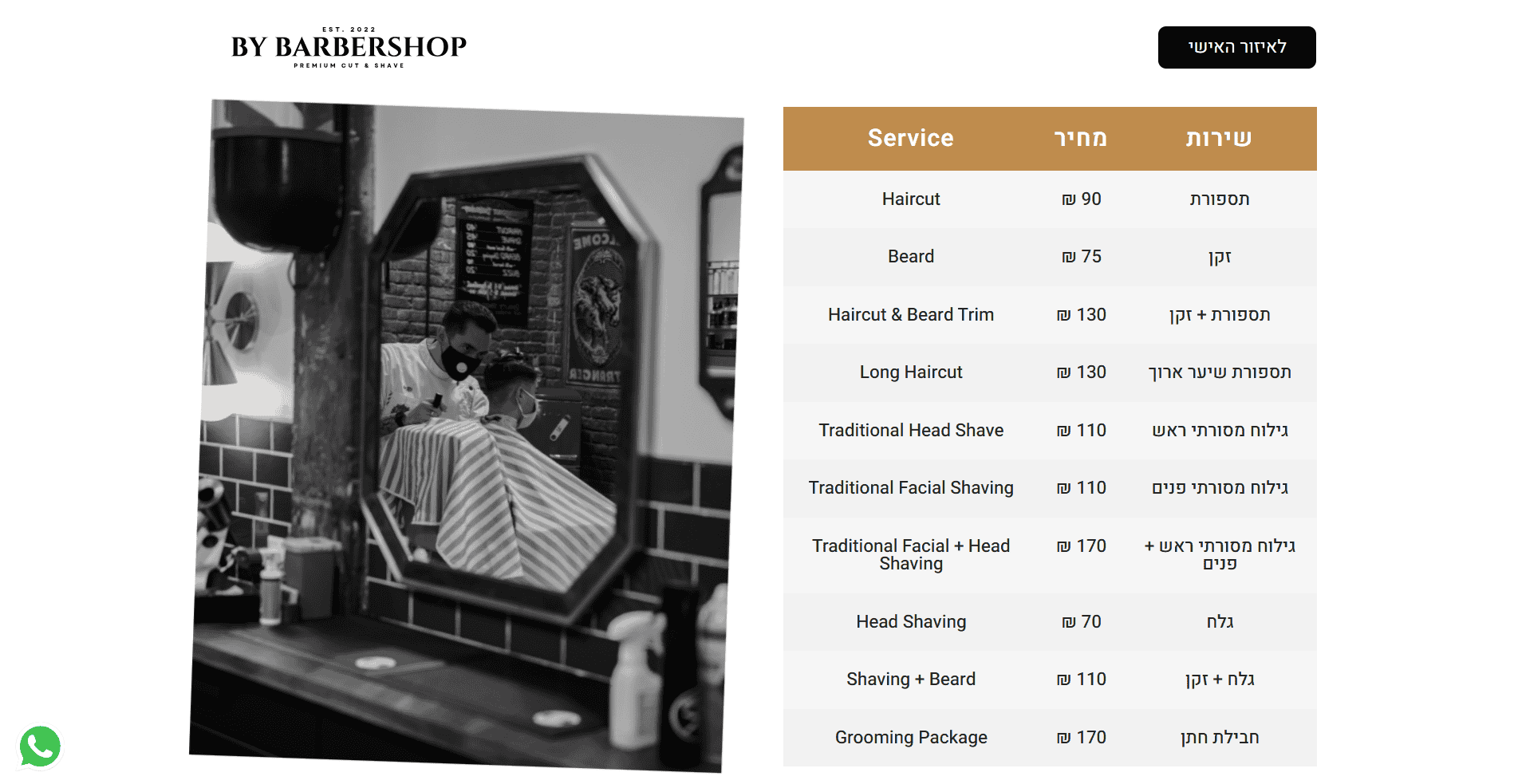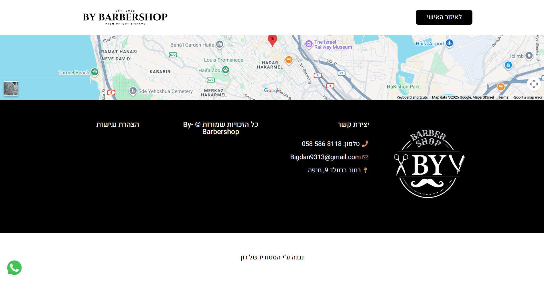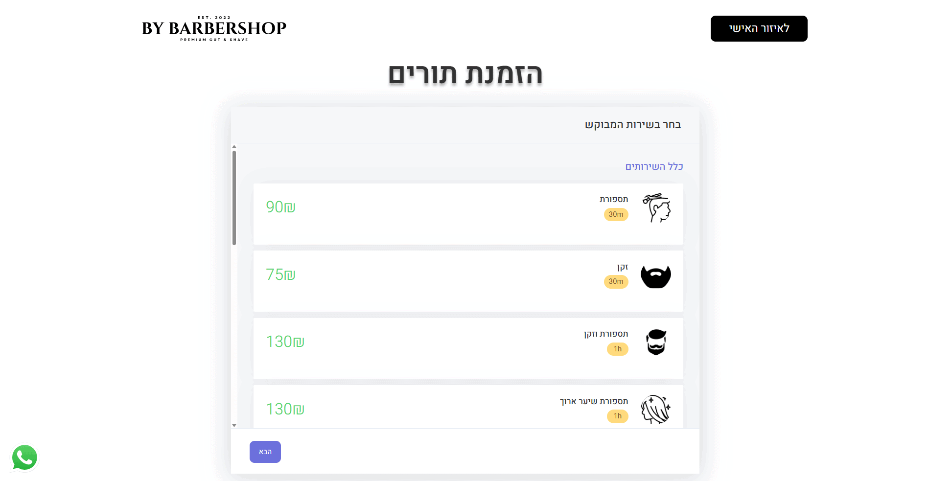 בניית אתר תדמית עם מערכת הזמנות מלאה עבור By Barbershop מספרת גברים מודרנית. האתר מאפשר ללקוחות לקבוע תורים בצורה נוחה, לבחור שירותים, לבחור ספר ולצפות בזמינות בזמן אמת. הפרויקט כלל אפיון חוויית משתמש, חיבור למערכת Booking, עיצוב נקי ומדויק המותאם לעולם הטיפוח הגברי, ותצוגה ברורה של שירותים, מחירים ותמונות מהמספרה.