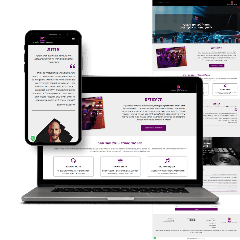 נבנה מבנה היררכי מדויק לכל הקורסים, כולל עמודי תוכן שיווקיים, טפסי הרשמה ייעודיים ואינטגרציה מלאה למערכת Make. כל טופס מעביר את הפרטים אוטומטית, מפעיל תזמון ושליחת הודעה ישירה לוואטסאפ עבור המשך שיחה שיווקית. דפי הלאראבל הוטמעו באמצעות IFRAME בצורה חלקה, עם התאמה לעיצוב הכללי ושמירה על חוויית שימוש רציפה.