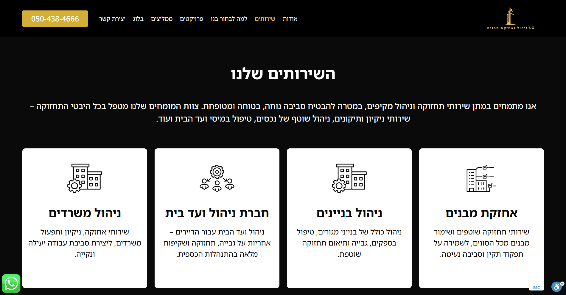 בניית אתר תדמית עבור LG Holding, חברה מקצועית לניהול ואחזקת מבנים. האתר מציג את תחומי השירות, התמחות החברה והערך שהיא מספקת לוועדי בתים, משקיעים ועסקים. הפרויקט כלל עיצוב חדש, שפה חזותית מסודרת, ותצוגה ברורה של סל השירותים בצורה נוחה ללקוחות.