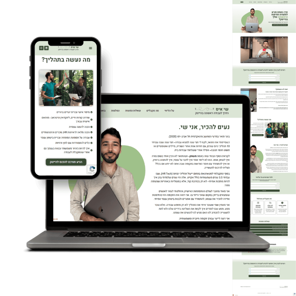 בניית מיני סייט עבור Shay Tohitech, מנטור הוליסטי שמלווה בוגרי מדעי המחשב וסטודנטים בדרכם למשרת הפיתוח הראשונה בהייטק. האתר מציג את תהליך הליווי, את האתגרים שאחרי התואר, את הכלים המעשיים שהלקוחות מקבלים ואת היתרונות של עבודה יחד. המבנה ממוקד המרות עם טפסי יצירת קשר ברורים וסיפורי הצלחה.